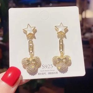 Charming Gold Plated Minnie Mouse Dangle Earrings with White Star-Shaped Design