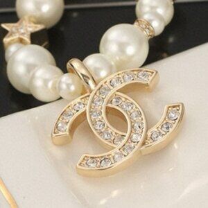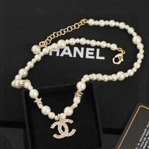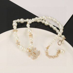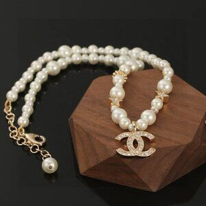 Charming Gold Tone Necklace with Pearl & Crystal Adornment