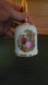 Enhance your decor with this charming decorative bell. Featuring a gold handle and a white body with a delightful scene, it's a perfect accent for any room.