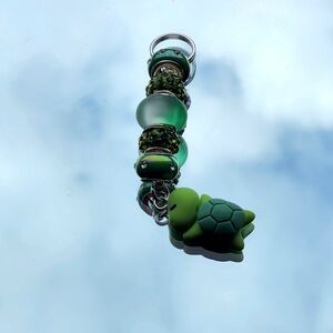 Delight in this charming handmade green turtle keychain accessory. Perfect for adding a playful touch to your collection.
