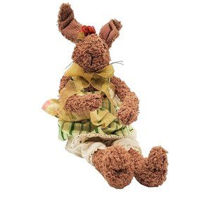 Charming Group Brown Bunny Rabbit Plush Shelf Sitter Easter Display Girl