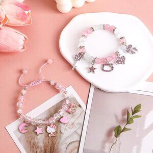 Charming Kawaii Cat Matching Bracelets Set - Crystal Bead & Braided Designs