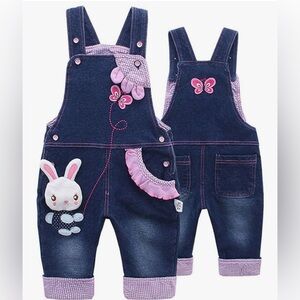 These delightful denim overalls feature playful pink accents and adorable designs, perfect for your child's playful days.