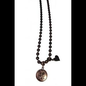 Express your love with this beautiful necklace featuring a distinct 'LOVE' charm and an adorable heart pendant. Made with alternating beads for a chic look, this piece is perfect for casual outfits or special occasions. The unique design makes it a great gift for loved ones or a sweet personal treat. Key features include: