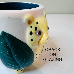 This mug's leopard looks like it's silently judging your caffeine addiction. With its adorable handle and leaf design, it's the perfect morning companion.
