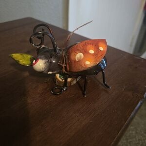 Enhance your home with this charming metal ladybug decor. Featuring vibrant orange wings and a sleek black body, this delightful piece adds a playful touch to any space.
