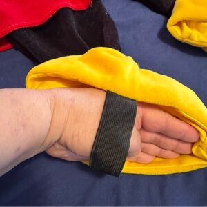 Let your child step into a world of fun with this charming mouse costume. Featuring vibrant black, red, and yellow colors, it's perfect for Halloween and dress-up adventures. Hands are able to come out of sleeve holes. Well thought out and well made.