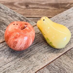 Charming Pair of Apple and Pear Salt and Pepper Shakers, Ceramic, 2”