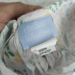 Delight in this charming pastel floral dress with matching bloomers. Perfect for any occasion.
