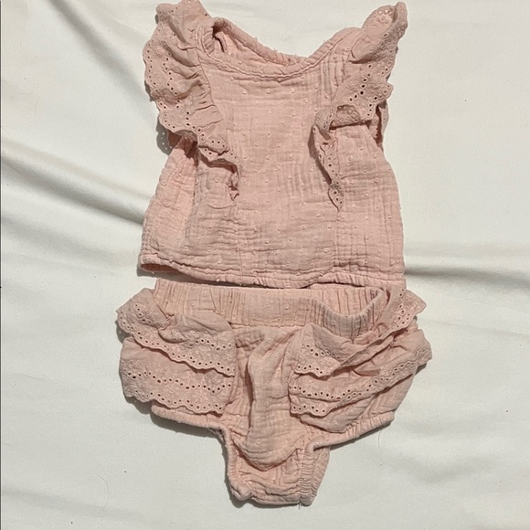 Elevate your child's style with this charming pink ruffled diaper cover set. Perfect for any occasion, it combines comfort and elegance.