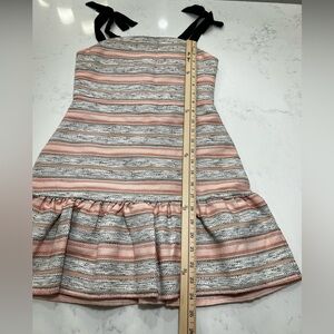 This delightful kids dress features pink and white stripes with elegant black bow details, perfect for casual outings.