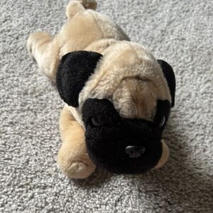 Delight your child with this charming plush pug toy, featuring a soft black and tan design. Perfect for snuggles and imaginative play. Adorable plush pug dog toy in cream and black. Perfect for dog lovers and collectors. Quality, Collectible Ganz.