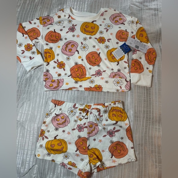 Delightful kids matching set featuring a charming pumpkin and floral design. Crafted for comfort and style, perfect for festive fun.