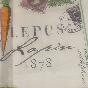 Delightful tea towel featuring a charming rabbit print with green and white accents. Ideal for adding a whimsical touch to your kitchen decor. New