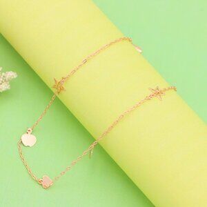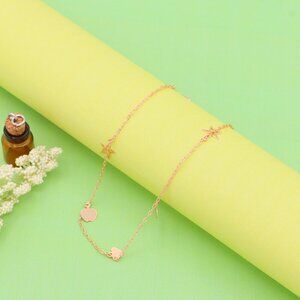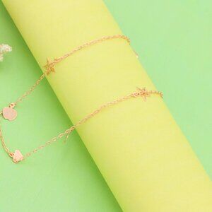 Add a delicate sparkle to your ankle with this rose gold anklet featuring heart and star charms. Crafted from high-quality brass and plated with gold, this piece blends simplicity and elegance for daily or special occasion wear.