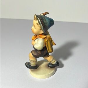 Adorable figurine featuring a child with an orange scarf and brown shorts. Perfect for collectors. In great shape surface crazing on base upper and lower sides.