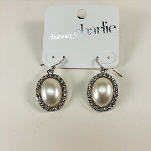 A beautiful design of a pair of Off-White stone, with Shiny Rhinestone around, Silver-tone, Teardrop Earrings. it's about 1.5 inches New With Tag.