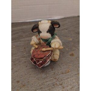 Charming Tails Figurine Cow Playing Drums From 1997 Enesco Marys Moo Moos Collec