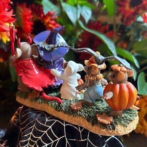 • Mouse children following parents: a little ghost, a scarecrow, and a Jack O’Lantern