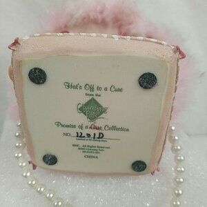 From the renowned Charming Tails collection comes this 2006 Hats Off To A Cure figurine. The piece features a mouse in pink, adorned with pearls, symbolizing breast cancer awareness.