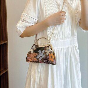 Charming Vintage Top Handle Clutch with Detachable Chain - Perfect for Evenings