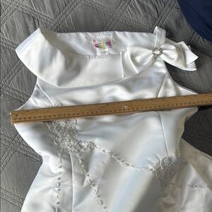 This charming white formal dress is perfect for your child's special occasions. Featuring a stylish bow accent, it adds a touch of elegance and confidence.