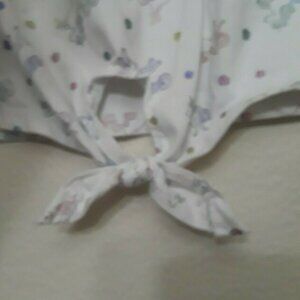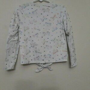 Charming white long sleeve top featuring a playful animal print and a stylish tie front. Perfect for casual outings.