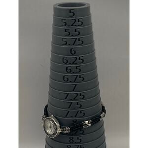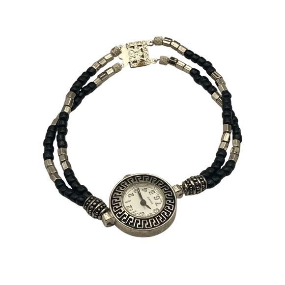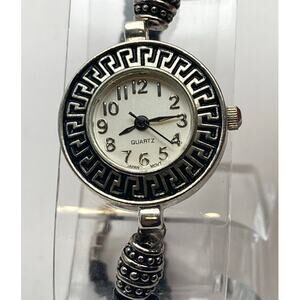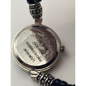 This charming women's watch is a delightful accessory that combines functionality with style. The 24mm size is perfect for a delicate wrist, and it comes with a decorative bracelet Band that complements the watch beautifully. I've installed a new battery, so it's ready to wear and enjoy. In very good pre-owned condition-please see all photos.