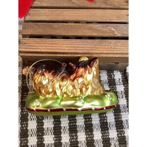 This charming Yorkie hand-blown glass Christmas tree ornament is shaped like a cute dog and a dog bone design, perfect for any Yorkie dog lover. The multicolor ornament is medium in size, handpainted, and features a hanging decor addition. Celebrate Christmas with this original, handcrafted collectible piece that captures the theme of Yorkie dogs in a festive and decorative manner. This ornament is a delightful addition to any holiday and seasonal decor collection.