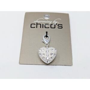 Charming by Chico's Charm Silver Tone Rhinestone Puffed Heart Zipper Pull New