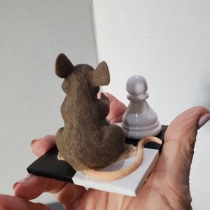 This adorable figurine by Fitz and Floyd features a clever mouse making its next move in a game of chess.