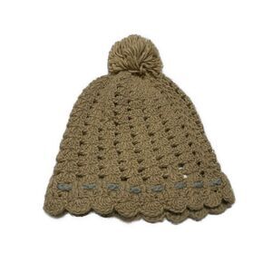 Charming Charlie Knit Tan Gray Winter Hat Heart Embellishment