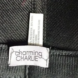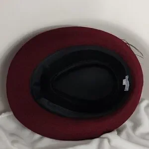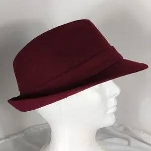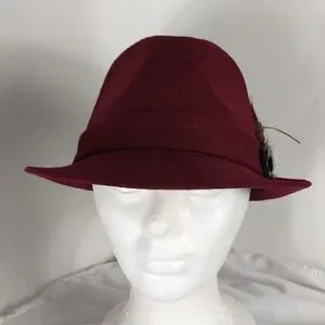This Charming Charlie wool maroon feathered unisex hat is a youth size and measures 22" inside. 70% polyester and 30% wool. Pre-owned and in excellent condition. All offers welcome.