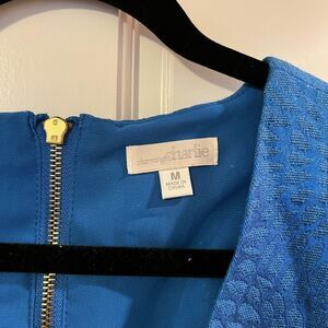 Worn once in like new condition blue and blue metallic colo with zíper in the back