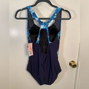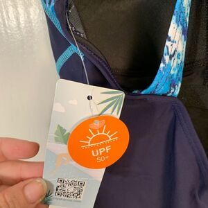 Charmo NWT navy blue/blue patterned SPF 50 one piece swimsuit Size medium