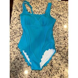 Charmo Womens Scalloped Ribbed One Piece Swimsuit