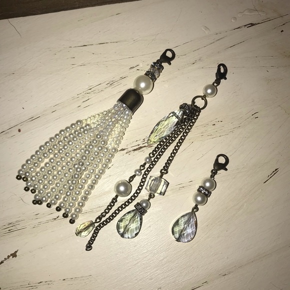 Charms w/claw hook - bronze/crystal beads
