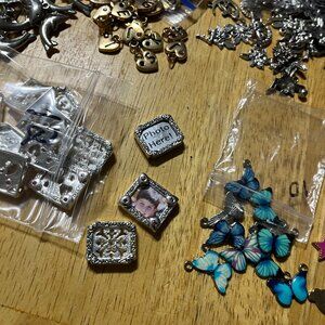This lot includes over 800 charms in various colors and topics, along with small gift bags and small plastic bags for packaging. The charms are perfect for jewelry making and other crafts, offering a wide range of options for creating unique and personalized pieces. With a diverse selection of colors and topics, these charms are sure to spark creativity and inspiration for any crafting project.