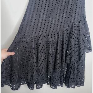 Charo Ruiz Aurora Strapless Midi Dress Eyelet Lace Corset Top Black Size Large