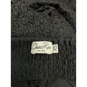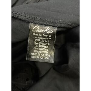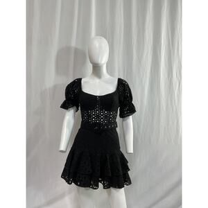 Charo Ruiz Jean Off-The-Shoulder Black Belted Broderie Anglaise Cotton-Blend Mini Dress Size XS: it has a slim-fitting bodice defined by an adjustable belt around the sheer waist panel and falls to a flouncy tiered hem, the puffed sleeves are elasticated.