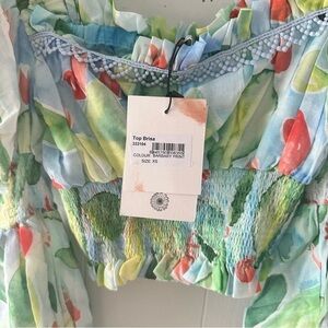 Charo Ruiz Ibiza Brisa Top NWT XS Long Sleeve Cropped Puff sleeve New Green Blue