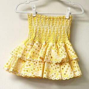 Charo Ruiz Ibiza Noa High Waisted Smocked Tiered Mini Skirt Yellow Women's Large
