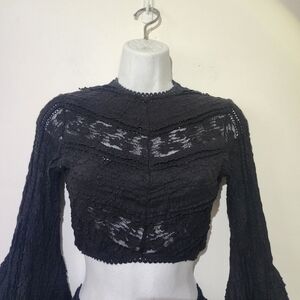 Feel free and beautiful in our Yam top. Its structure created by the mix of textures combines perfectly with the shape of its flared lightweight sleeves. For its crafting, blonde lace and sustainable cotton has been used and the ways of working of the Global Recycled Standard has been followed.