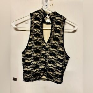 Style: black and cream lace. Crop top