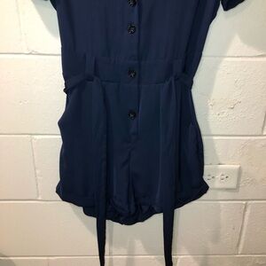 Charolette Russe Navy Blue Button Down Short Sleeve Belt Romper Size Small