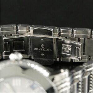Elegant Charriol watch featuring a silver band and a white dial. Roman numerals add a classic touch.