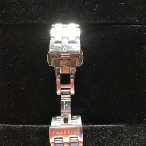 Striking. Rose gold set with diamond bezel. Double locking strap. Elegant statement piece. Charriol always provides the perfectly understated high end presentation. I am getting divorced and my wedding ring was rose gold; the watch was bought to match. Marriage lasted a hot 3 months, needless to say the watch has only extremely light wear. Rose gold wedding ring and band available soon...If he ever puts his big boy pants on and gives it back! (You gotta just laugh!)