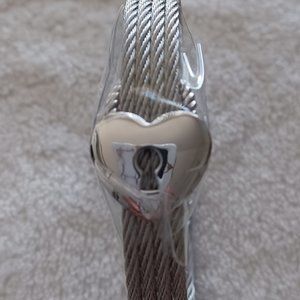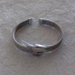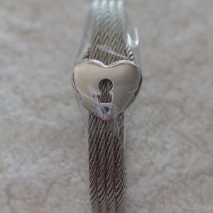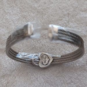 Charriol Sterling Silver Heart Lock & Key Celtic Cable Cuff Bracelet, Size Small