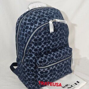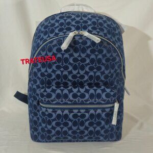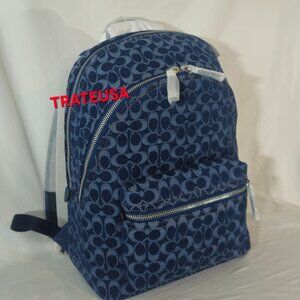 Detailed with Coach Signature, this spacious lightweight denim style has a Double zip-around closure, a convenient outside pocket for essentials, an inside pocket for easy organization and room for a 16” laptop. Aprox. Weight 1.59 Lbs.
