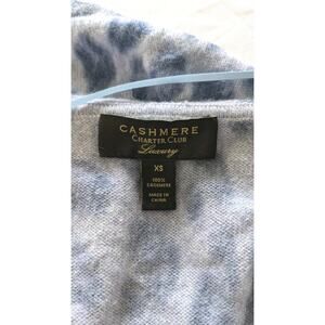 Charter Club 100% Cashmere Blue Lupine Leopard Animal Open Cardigan Hoodie XS